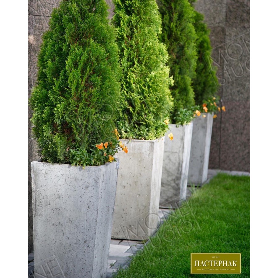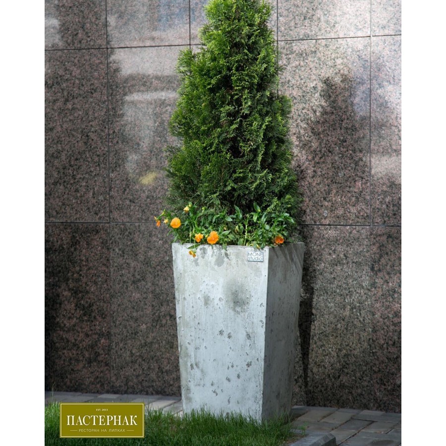 Вазон Boston выполнен из армированного бетона. Вазон отлично подойдет для экстерьеров и интерьеров в современном стиле. Наиболее приемлемо использование вазона для оформления частной и коммерческой недвижимости, также декорирование улицы. Уличный вазон Boston имеет форму правильной трапеции. Рекомендуем использовать вазон в совокупности с низким растением шарообразной формы.