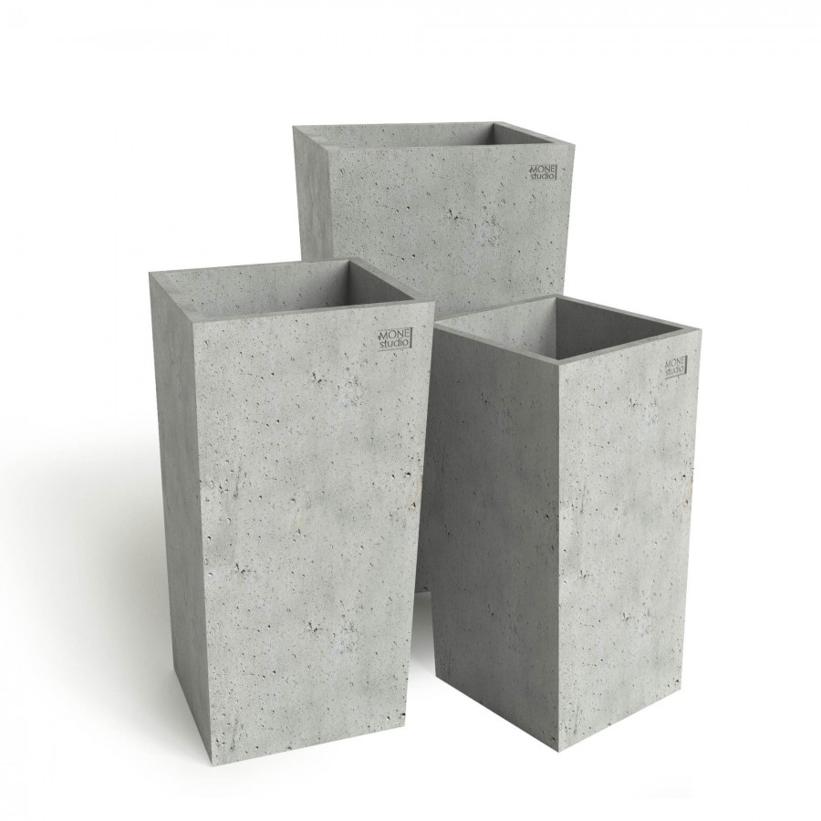Поверхность вазона имеет мелкие поры, которые придают вазону аутентичный вид. По желанию заказчика, поверхность вазона MONE studio может быть выровнена. Вазону MONE studio могут быть приданы индивидуальные декоративные характеристики. Такие как штукатурка, индивидуальная художественная роспись, а также нанесение корпоративная символика.